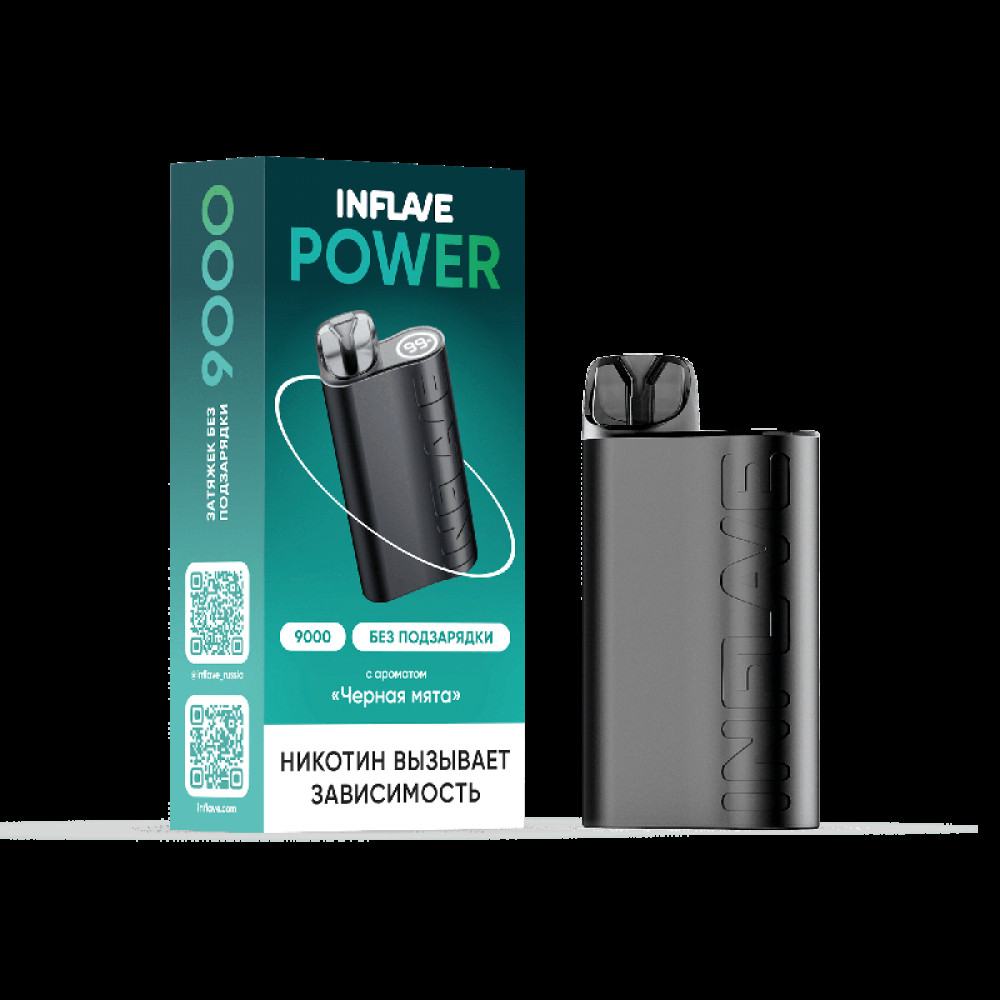 Электронная сигарета INFLAVE POWER 9000 затяжек Черная Мята - купить в Нарткале